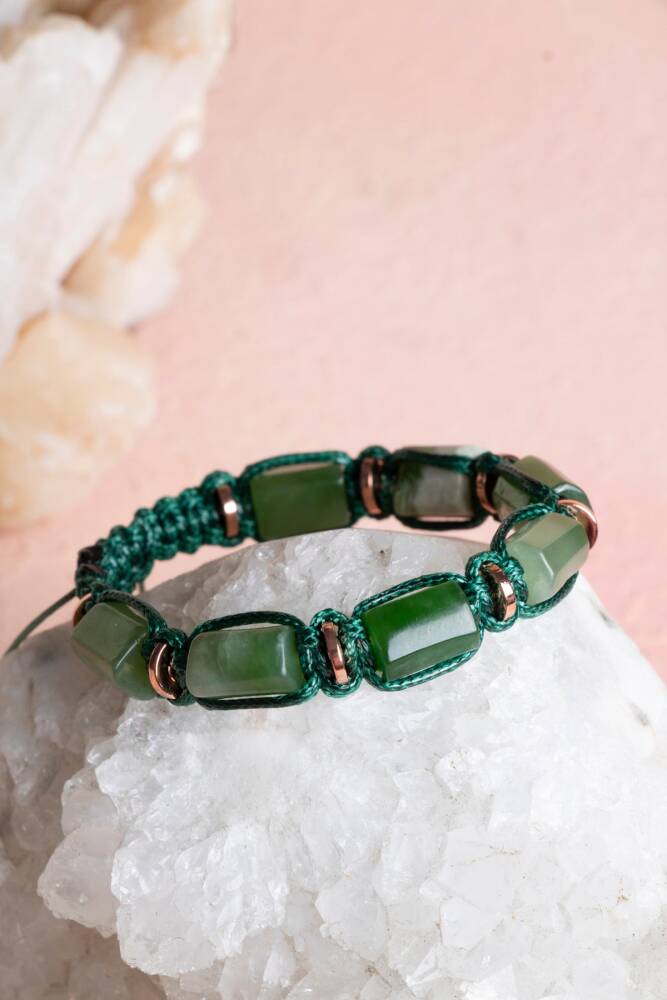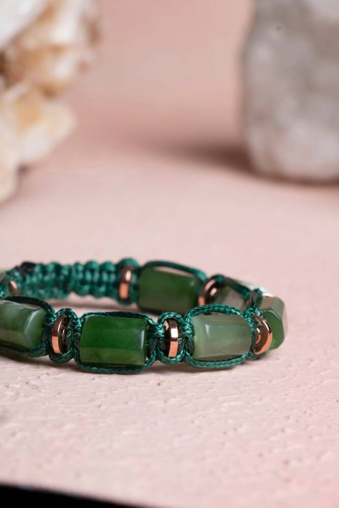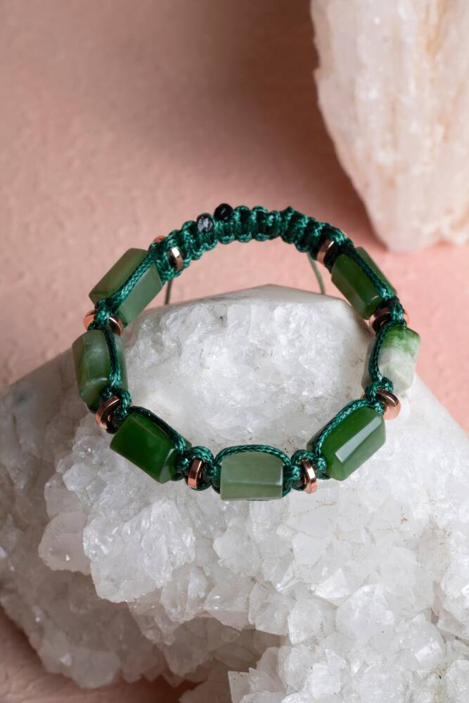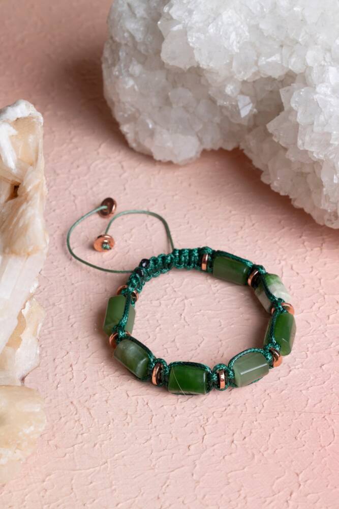Yeşim’in bereket ve uyum veren enerjisi ile Hematit’in koruyucu gücü, kadınlara özel zarif bir makrome bileklikte buluşuyor. El işçiliğiyle hazırlanan bu özel tasarım, %100 doğal ve sertifikalı taşlarla hem ruhsal denge sağlar hem de günlük stilinize zarif bir dokunuş katar.