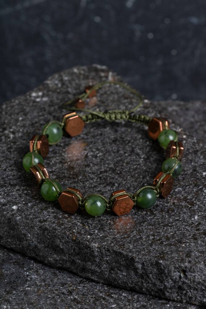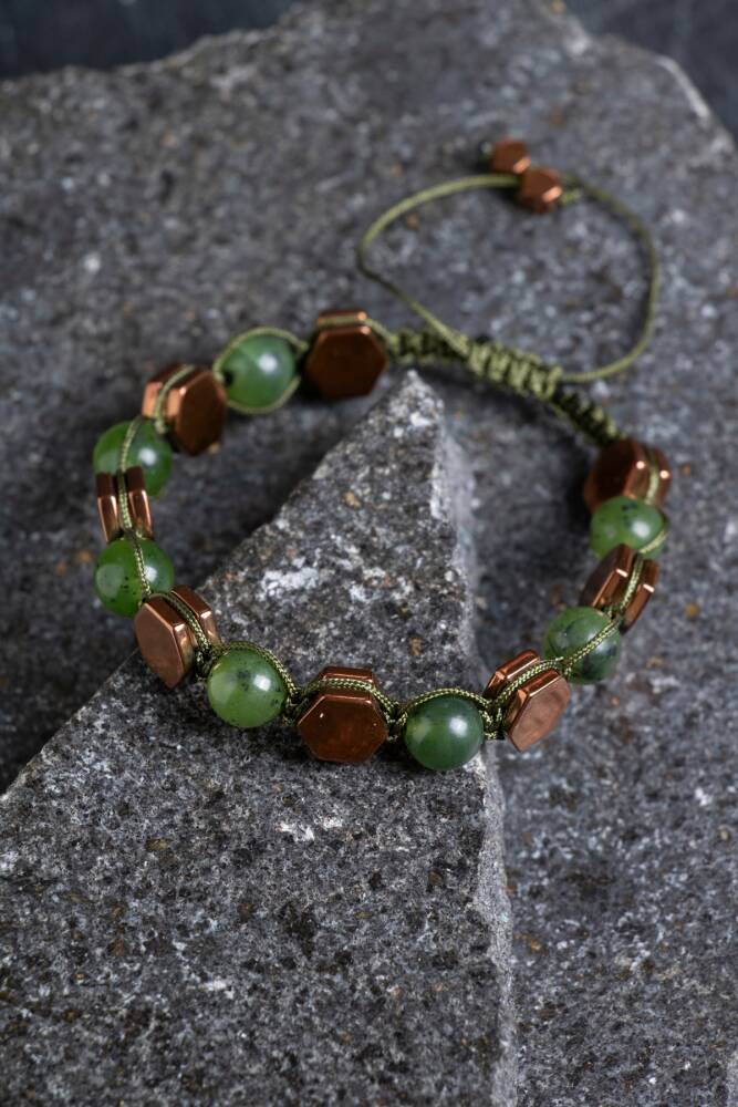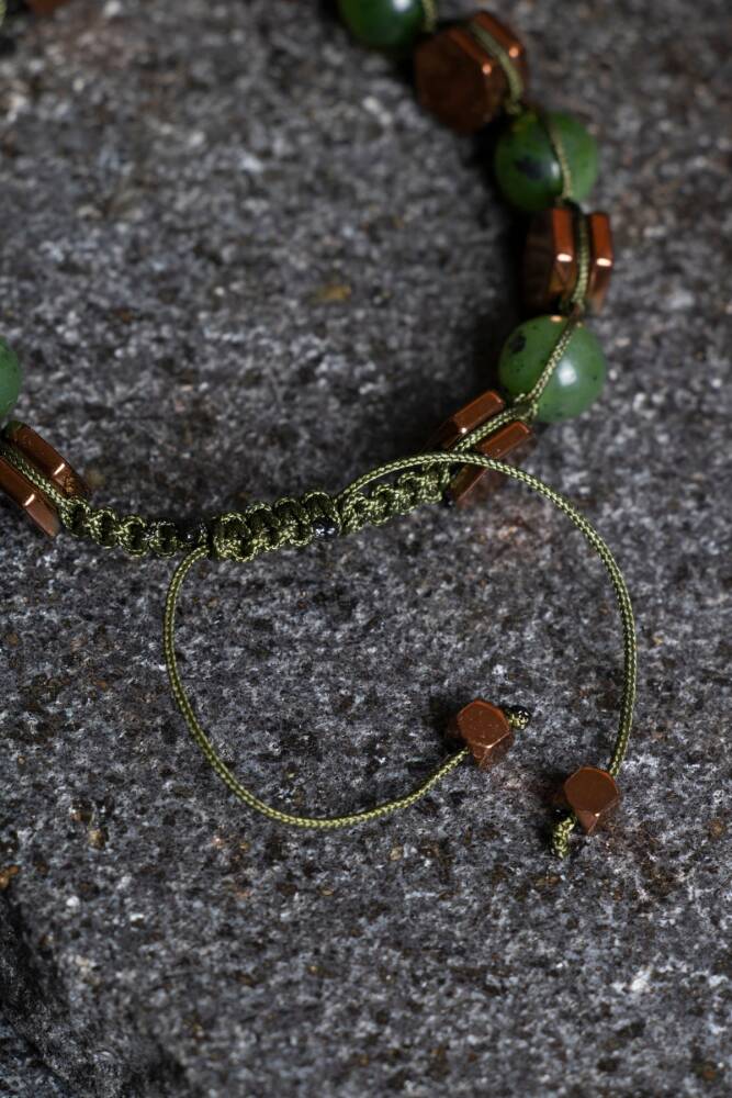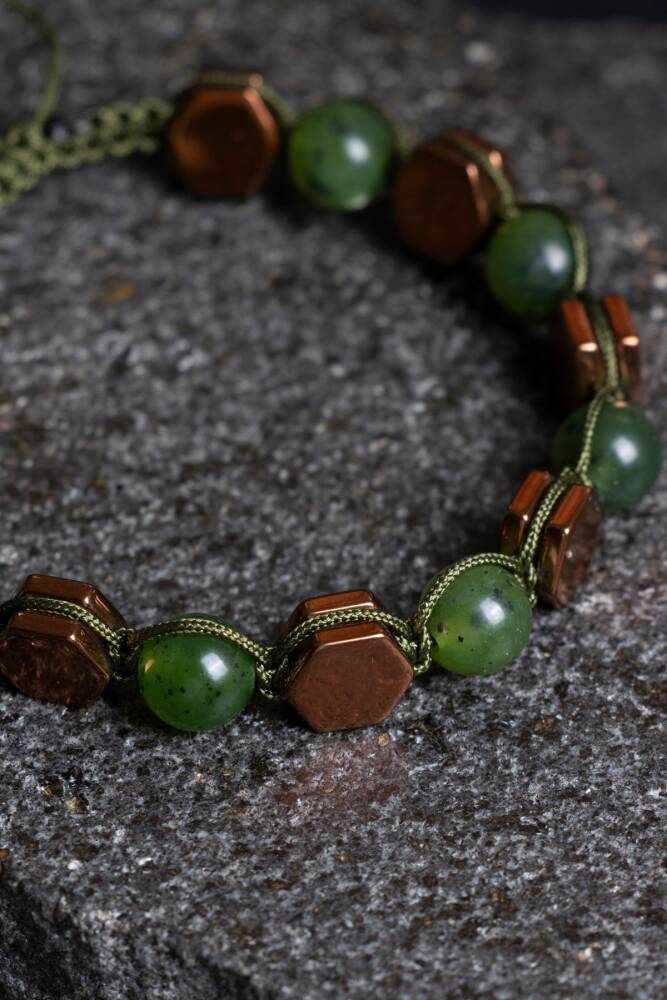 Yeşim ve Hematit Doğal Taş Makrome Bileklik Huzur, bereket ve dengenin toprakla buluşması. Doğu kültürlerinde 'Cennetin Taşı' olarak adlandırılan Yeşim ile zihni berraklaştıran Hematit, el emeği makrome işçiliğiyle bir araya geldi. Bu bileklik, bir yandan ruhunuza dinginlik verirken diğer yandan ayaklarınızın yere sağlam basmasını sağlar. Bu İkilinin Enerji Rehberi Yeşim (Huzur ve Şans): Bilgelik, sevgi ve bolluğu çeken bir taştır. Sinir sistemini yatıştırır, kalbi şifalandırır ve uzun ömürlü bir huzur sağladığına inanılır. Aynı zamanda bedeni toksinlerden arındıran bir detoks enerjisine sahiptir. Hematit (Topraklama ve Koruma): Kişinin öz güvenini artırır ve dağınık zihni toparlar. Negatif enerjiyi emerek kişiye bir kalkan oluşturur. Kan dolaşımı ve fiziksel direnç üzerinde dengeleyici bir etkisi vardır. Uyum: Yeşim'in yumuşak ve şifacı enerjisi, Hematit’in disiplinli ve koruyucu yapısıyla dengelenir; bu da kullanıcıya hem içsel barış hem de dışsal bir güç verir. Tasarım ve Malzeme Detayları Ayarlanabilir Makrome Örgü: Dayanıklı ve cildi tahriş etmeyen özel takı ipiyle hazırlanan sürgülü (asansör) kilit, bileğinize tam oturur ve gün boyu konfor sağlar. A Kalite Doğal Taşlar: Yeşim taşının en canlı yeşil tonları ve Hematit’in aynalı metalik gri parıltısı kullanılmıştır. Minimalist ve Doğal: Metal parça içermediği için (isteğe bağlı) alerji riski taşımaz ve doğallığı en saf haliyle yansıtır. Neden Bu Bilekliği Tercih Etmelisiniz? Stresten Arının: Yoğun bir iş gününde Yeşim’in sakinleştirici etkisinden ve Hematit’in odaklayıcı gücünden faydalanın. Bolluğu Hayatınıza Çekin: Yeşim, tarih boyunca şans ve bereket mıknatısı olarak kullanılmıştır; Hematit ise bu bereketi hayatınızda kalıcı kılmak için gereken disiplini sağlar. Her Mevsim Şıklık: Yeşilin huzuru ve metalik grinin modernliği, hem keten yazlık kıyafetlerle hem de kışlık koyu tonlarla mükemmel uyum sağlar.
