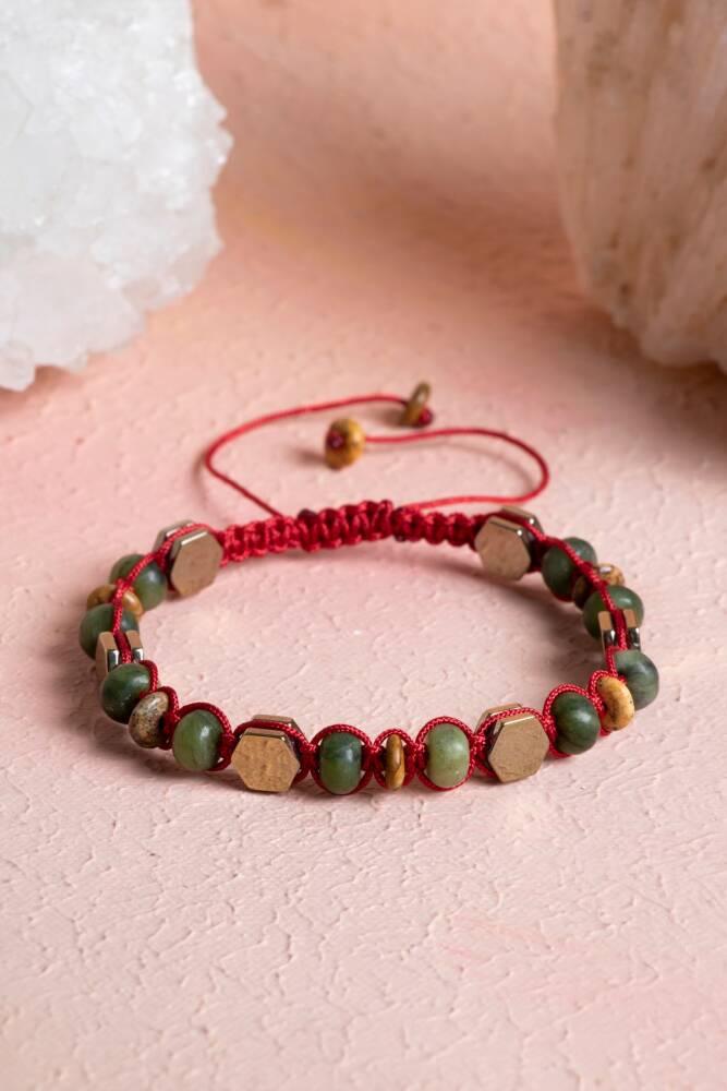 Yeşim, Jasper, Hematit Doğal Taş Makrome Bileklik