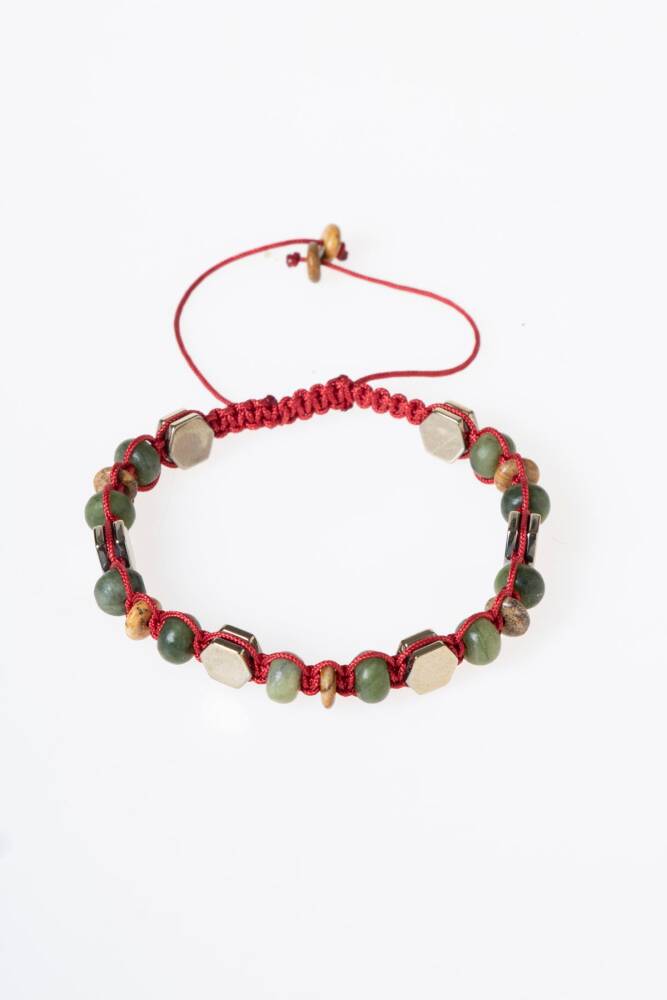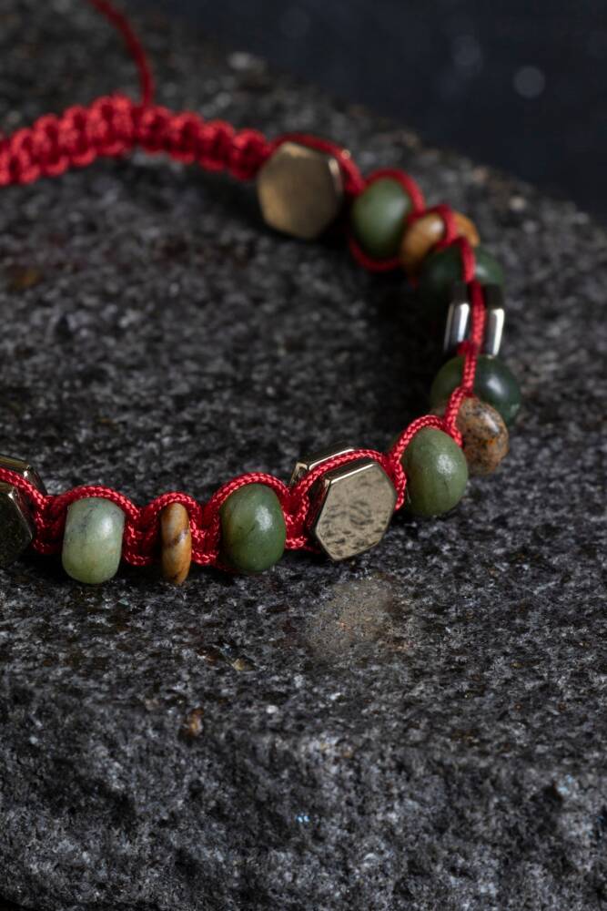 Yeşim, Odun Jasper ve Hematit Doğal Taş Makrome Bileklik