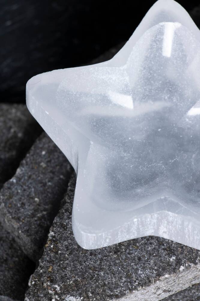 Mistik ve Büyüleyici Estetik: Yıldız formu, Selenit'in yarı saydam yapısıyla buluştuğunda, mistik, büyülü ve sofistike bir estetik sunarak meditasyon alanlarına ve gece komodinlerine eşsiz bir hava katar.
