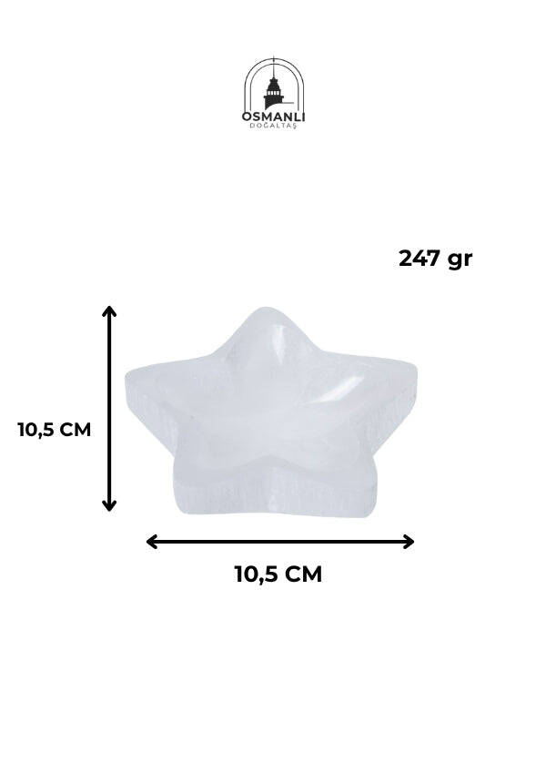 İlahi Bağlantı ve Rehberlik: Yıldız formu, ilahi ışığı, rehberliği ve ruhsal uyanışı temsil eder. Selenit'in Taç Çakrası ile olan uyumu, bu tabak aracılığıyla sezgisel yetenekleri ve yüksek farkındalığı destekler.