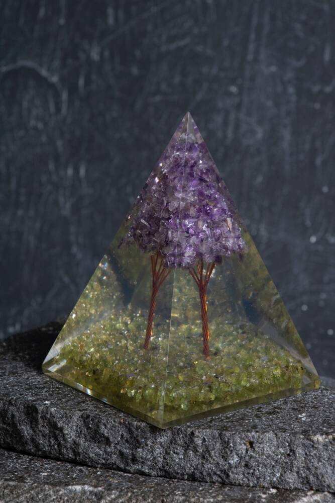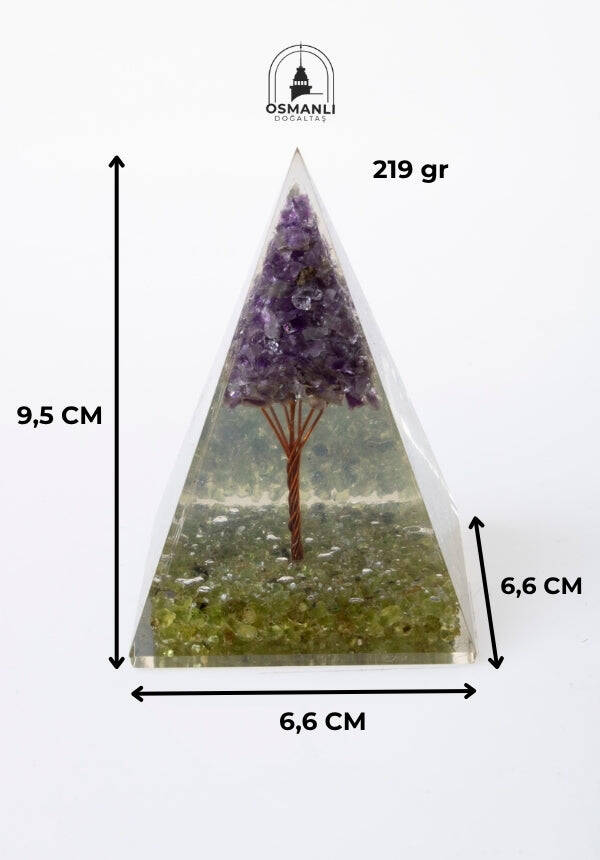 - Doğal taşların enerjisini evinize taşıyan Zebercet ve Ametist ağaçlı piramit, dekoratif bir dokunuşla yaşam alanlarınıza huzur katar. - Sertifikalı taşlar, ürünün orijinalliğini ve kalitesini garanti eder, böylece güvenle kullanabilirsiniz. - Ametist'in sakinleştirici etkisiyle stresi azaltır ve zihinsel dengeyi destekler, Zebercet ise enerji akışını dengeleyerek pozitifliği artırır. - Ağaçlı tasarımı sayesinde doğal bir görünüm sunar ve mekanınıza organik bir hava katar. - Her iki taşın kombinasyonu, hem estetik hem de fonksiyonel bir aksesuar olarak öne çıkar; hem göz alıcı hem de faydalıdır. Zebercet (Peridot) ve Ametist taşları, farklı enerjilerle ruhsal dengeye katkı sağlar. Zebercet, zeytin yeşili rengiyle şansı, bolluğu ve pozitifliği çekerken; özellikle öfke, kıskançlık ve suçluluk gibi duygusal yükleri hafifletmeye yardımcı olur. Diğer yandan Ametist, mor rengiyle güçlü bir koruyucu ve sakinleştiricidir. Stresi, kaygıyı ve gerginliği azaltır, uykusuzluğa iyi gelir ve meditasyon sırasında zihinsel netliği ve ruhsal uyanışı destekler. Her iki taş da, negatif enerjiyi uzaklaştırma ve taşıyan kişiye huzur verme konusunda etkilidir.
