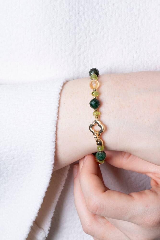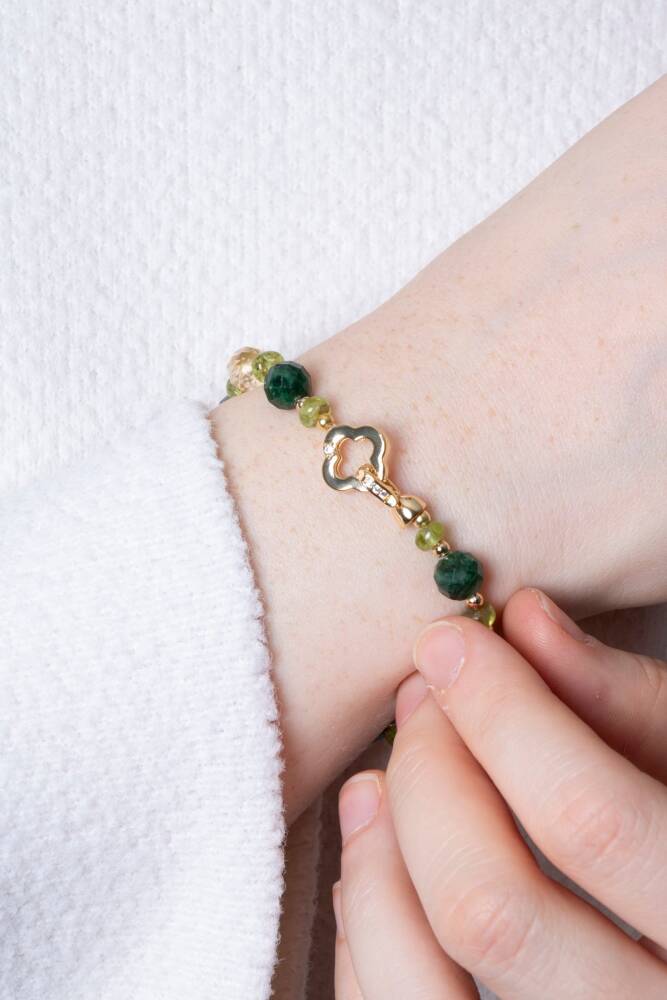 Zebercet, Sitrin ve Zümrüt Gümüş Aparatlı Doğal Taş Bileklik (Kilitli) Bolluk, bereket ve kalbin ferahlığı; gümüşün zarafetiyle bileğinizde. Doğanın en değerli yeşil tonlarını barındıran Zümrüt ve Zebercet, güneşin enerjisini taşıyan Sitrin ile bu özel tasarımda bir araya geliyor. 925 ayar gümüş kilit sistemi ve aparatlarıyla tamamlanan bu bileklik, hem maddi hem de manevi yükselişi simgeleyen bir enerji kalkanı sunar. Bu Değerli Üçlünün Enerji Rehberi Zümrüt (Koşulsuz Sevgi ve Sadakat): 'Taşların Şahı' olarak bilinen Zümrüt, kalp çakrasını açar. Sadakati, huzuru ve içsel dengeyi güçlendirir. Ruhsal büyümeyi desteklerken, kullanıcısına asalet ve sabır aşılar. Sitrin (Bolluk, Bereket ve Başarı): 'Tüccar Taşı' olarak anılır. Negatif enerjiyi emmek yerine dağıtır. Yaşam sevincini artırır, öz güveni pekiştirir ve maddi-manevi bereketi hayatınıza davet eder. Zebercet / Peridot (Neşe ve Arınma): Kişiyi kıskançlık, öfke ve stresten arındıran bir 'duygusal detoks' taşıdır. Geleceğe umutla bakmanızı sağlar ve kalbinizi yeni başlangıçlara açar. 925 Ayar Gümüş Aparatlar: Gümüşün koruyucu ve iletken yapısı, bu üç güçlü taşın frekansını stabilize ederek enerjiyi kesintisiz bir şekilde size aktarır. Tasarım ve Teknik Özellikler A Kalite Doğal Taşlar: Zümrüt'ün derin yeşili, Zebercet'in canlı zeytin tonları ve Sitrin'in bal sarısı parıltısı, lüks ve ferah bir renk geçişi oluşturur. 925 Ayar Gümüş İşçilik: Kilit sistemi, uzatma zinciri ve aralarda kullanılan tüm parçalar tamamen gerçek gümüşten üretilmiştir. Kararmaya karşı dayanıklı kaplama ile korunmaktadır. Güvenli Kilitli Yapı: Mücevher teli üzerine titizlikle dizilen taşlar, papağan kilit sistemi sayesinde bileğinizde güvenle taşınır. Neden Bu Bilekliği Tercih Etmelisiniz? Mıknatıs Etkisi: Bereket (Sitrin) ve sevgi (Zümrüt) enerjisini birleştirerek hayatınıza pozitif etkileri çekmek için harika bir yardımcıdır. Mücevher Değerinde: Doğal taşların ham güzelliği ile gümüşün kalitesini birleştiren bu tasarım, yıllar boyu değerini kaybetmeyecek bir yatırımdır. Zarif ve Işıltılı: Hem günlük profesyonel şıklığınızda hem de özel davetlerde 'imza parça' olarak kullanabileceğiniz bir estetiğe sahiptir.