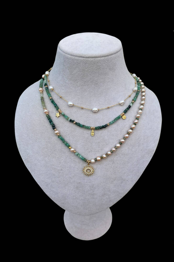 Sevgililer Gününe Özel İnci - Zümrüt Doğal Taş 925 Ayar Gümüş Kolye Seti 3'lü Kolye