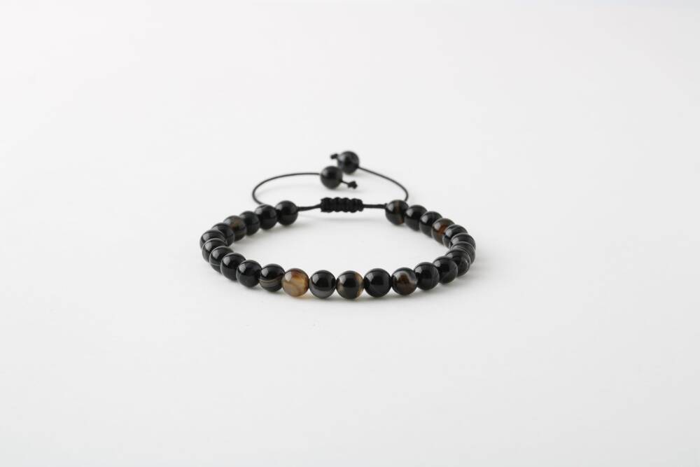 Siyah Göz Akik 6mm Merdiven Kapama Doğal Taş Bileklik - 1