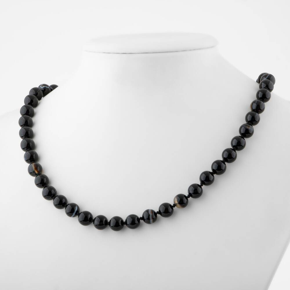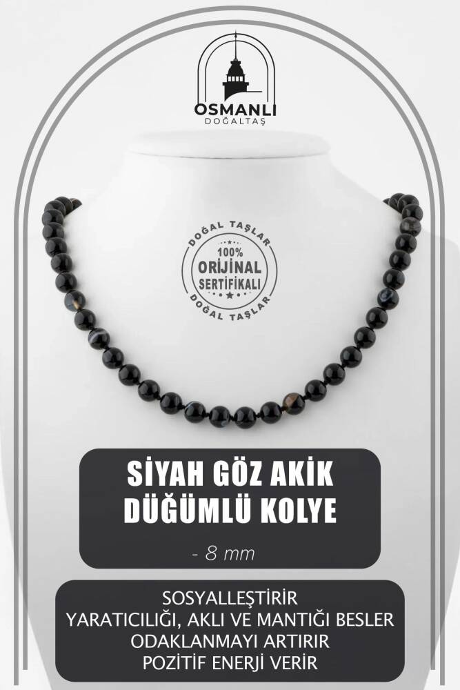 Siyah Göz Akik 8 mm Düğümlü Doğal Taş Kolye - 1