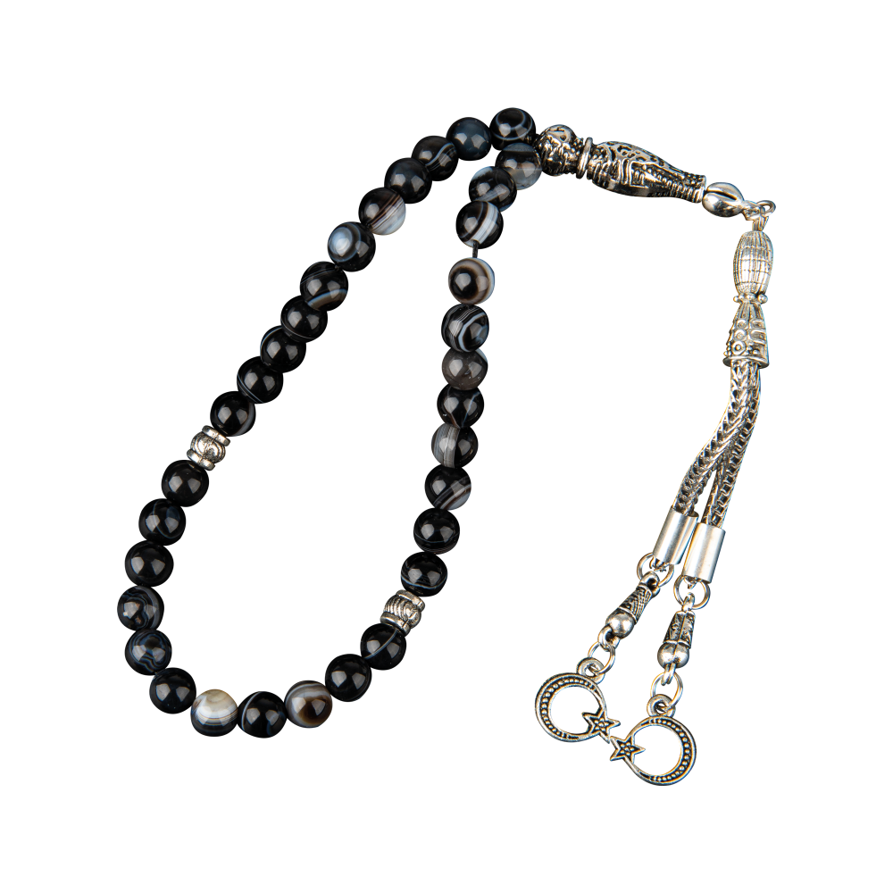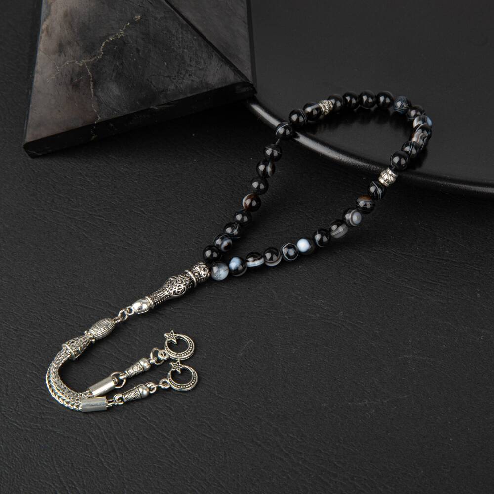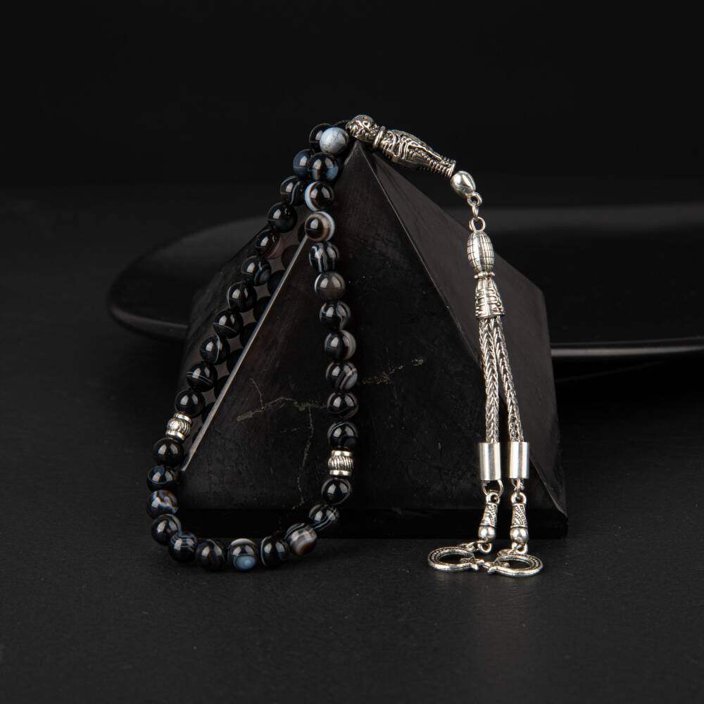 Siyah Göz Akik Doğal Taş Tesbih 33lük - 6mm