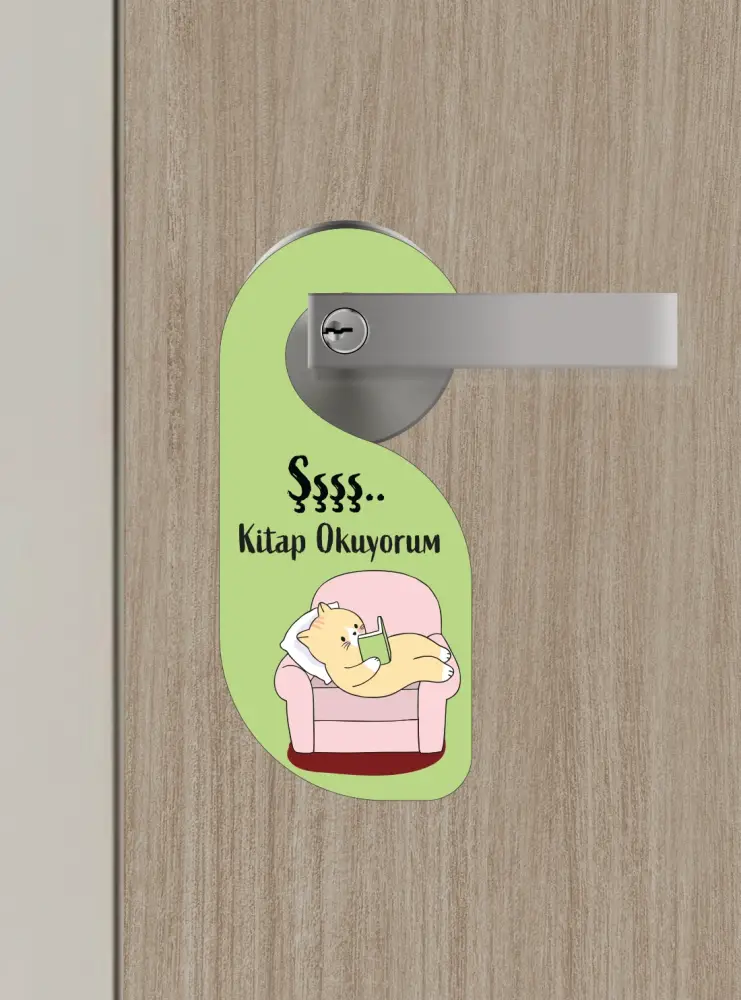 “Okuma keyfinize sessizlik eşlik etsin… Kapınıza asın, mesajınızı verin: Şşş… Kitap Okuyorum! 🐱📖”