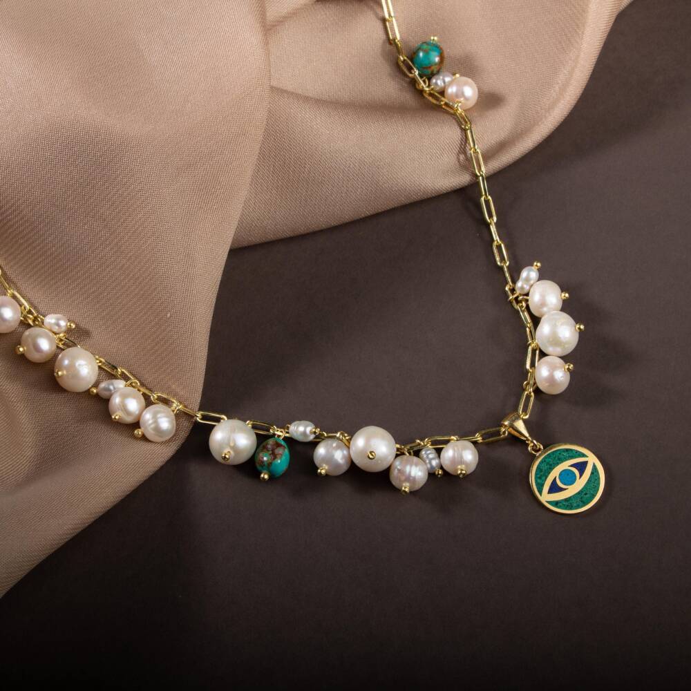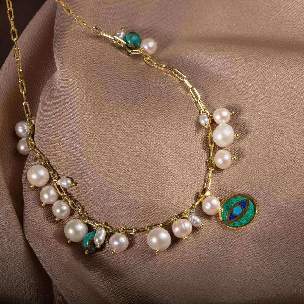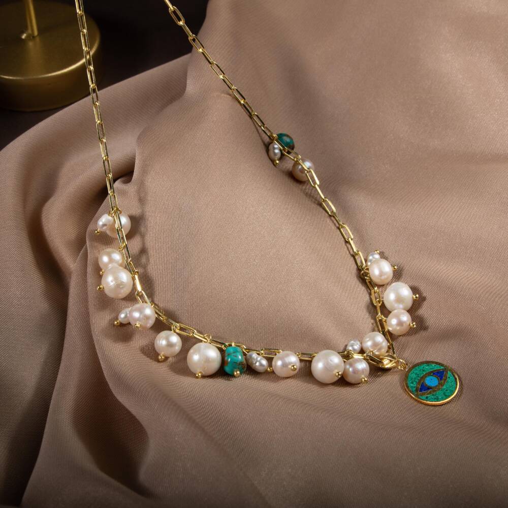 İnci ÖzellikleriDişil enerji verir. Hem ruhsal hem de bedenen hafiflik verir. Kaygıyı, gerginliği ve kötü düşünceleri engeller. Turkuaz (Firuze) Taşı ÖzellikleriNazara karşı çok etkilidir. Romantizmi artırır. Olumsuz enerjileri dağıtır. Hava kirliliğine ve çevresel kirliliklere karşı koruma sağlar. Psikolojik yorgunluğu giderir. -----------------