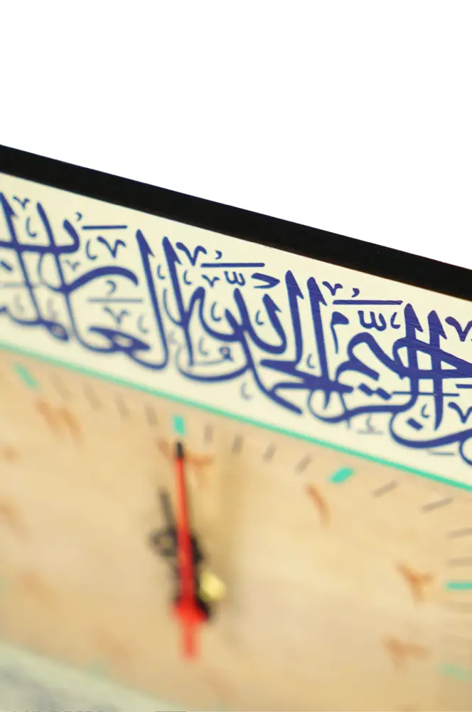 8 mm kaliteli MDF üzerine yüksek çözünürlüklü UV baskı tekniği ile üretilmiş olup, çevresini saran zarif hat sanatı içerisinde Fâtiha Sûresi yer almaktadır.